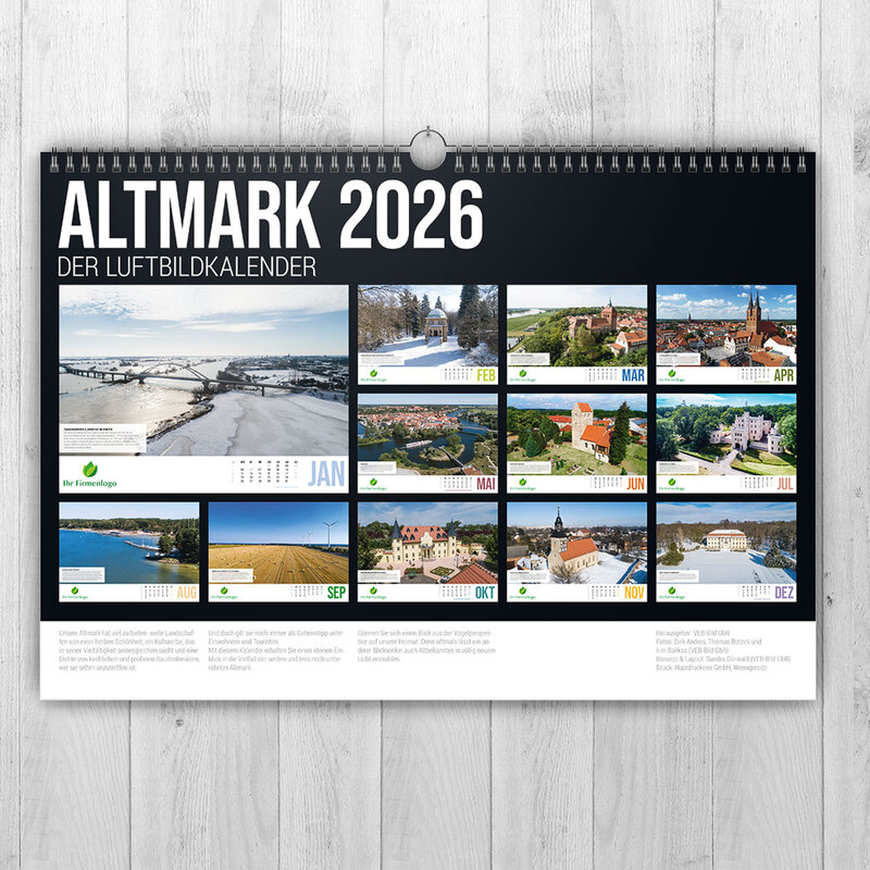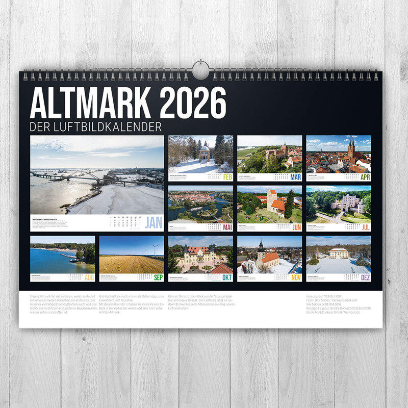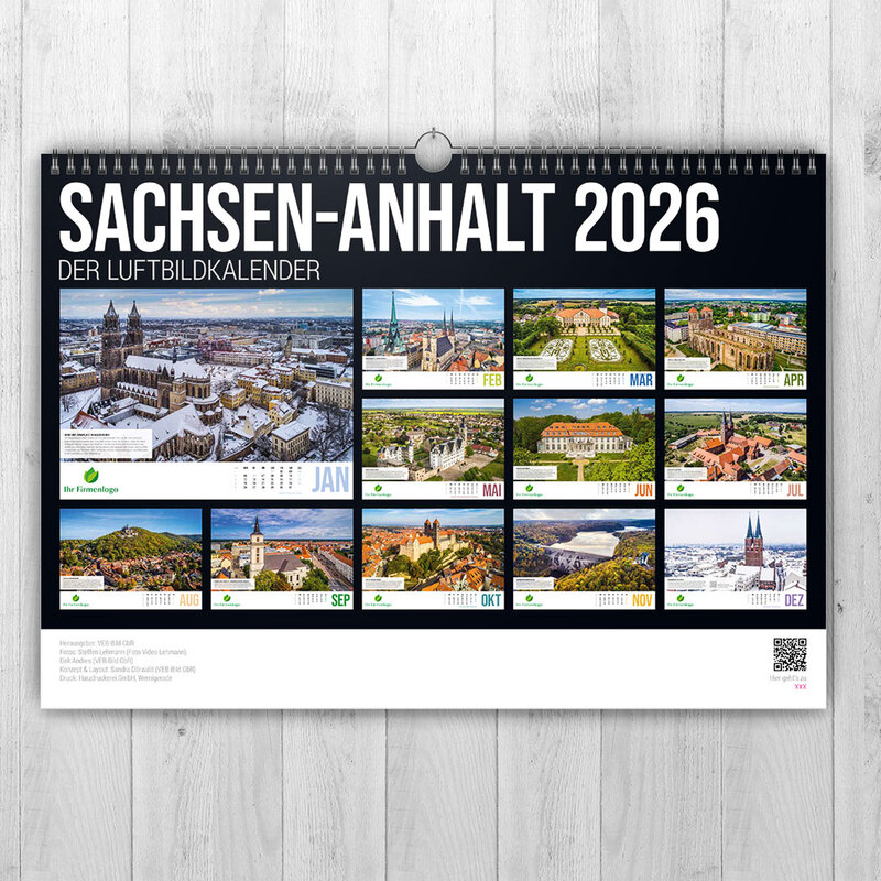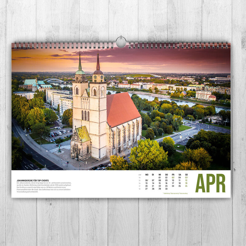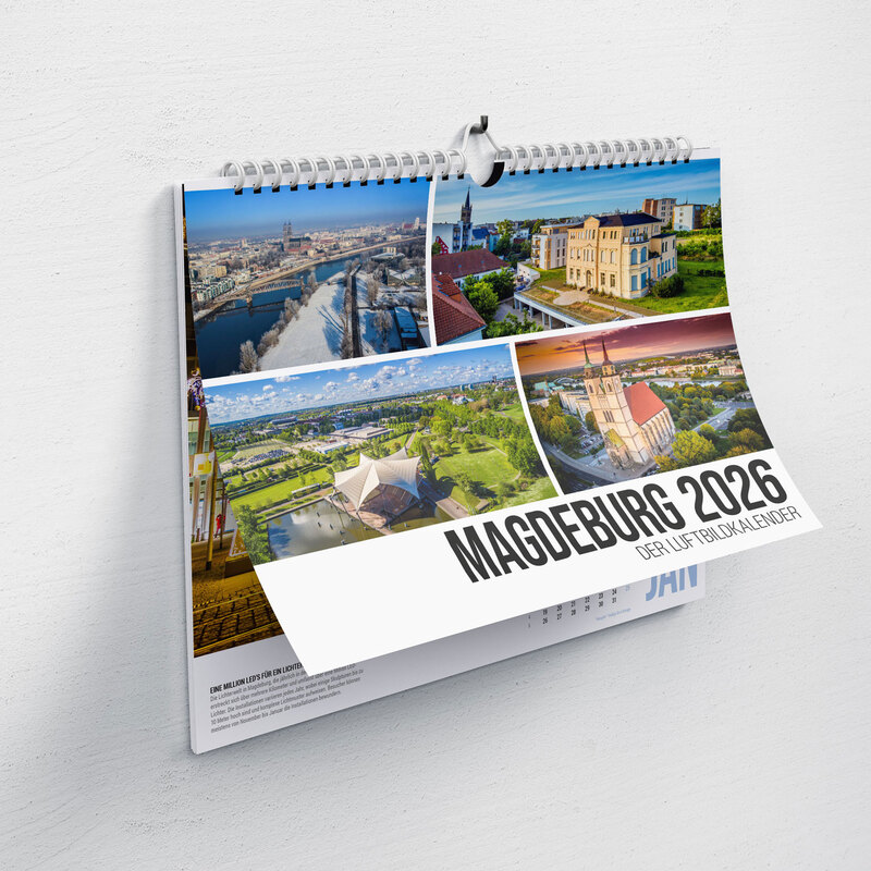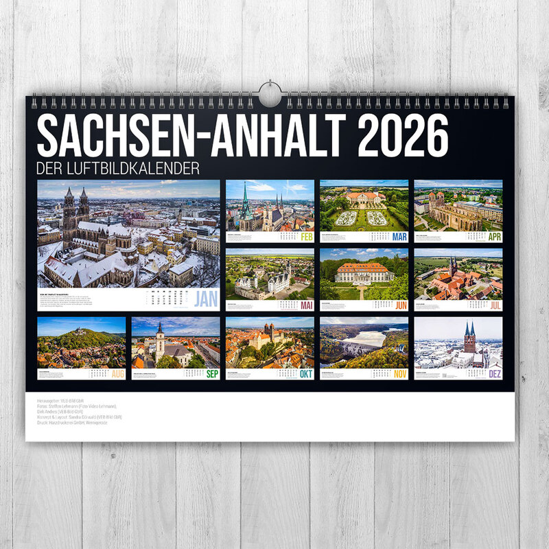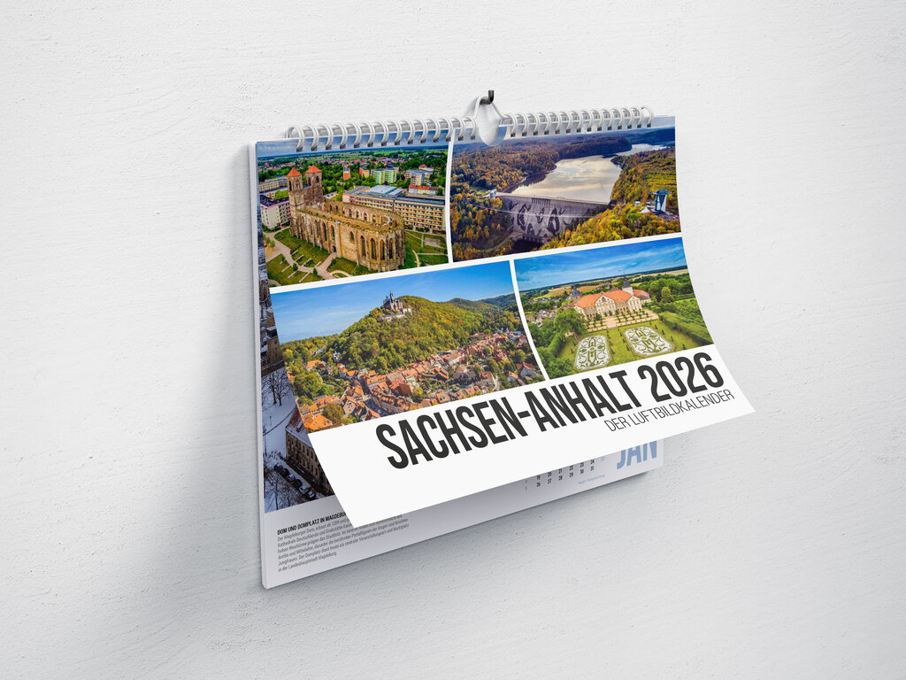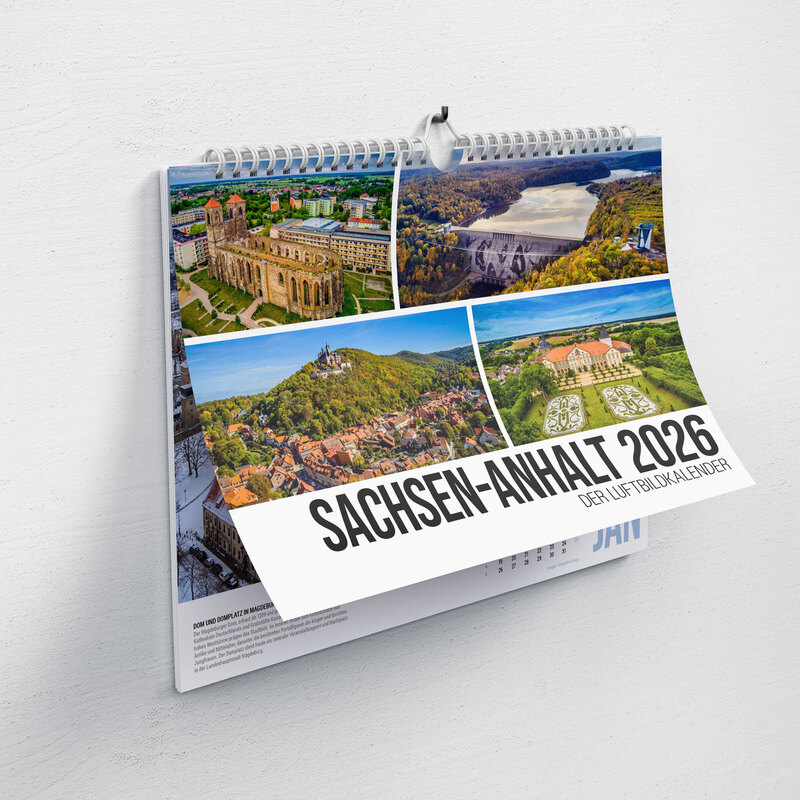 Unsere Luftaufnahmen in diesem Kalender bieten einen besonderen Blick auf die Region. Lerne Sachsen-Anhalt aus der Vogelperspektive kennen und entdecke jeden Monat eine neue, spannendeAnsicht.