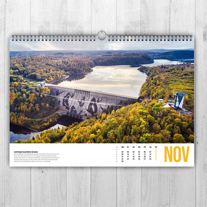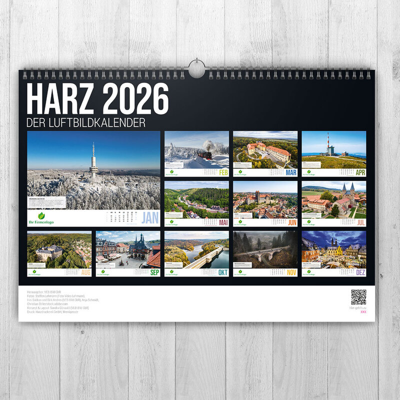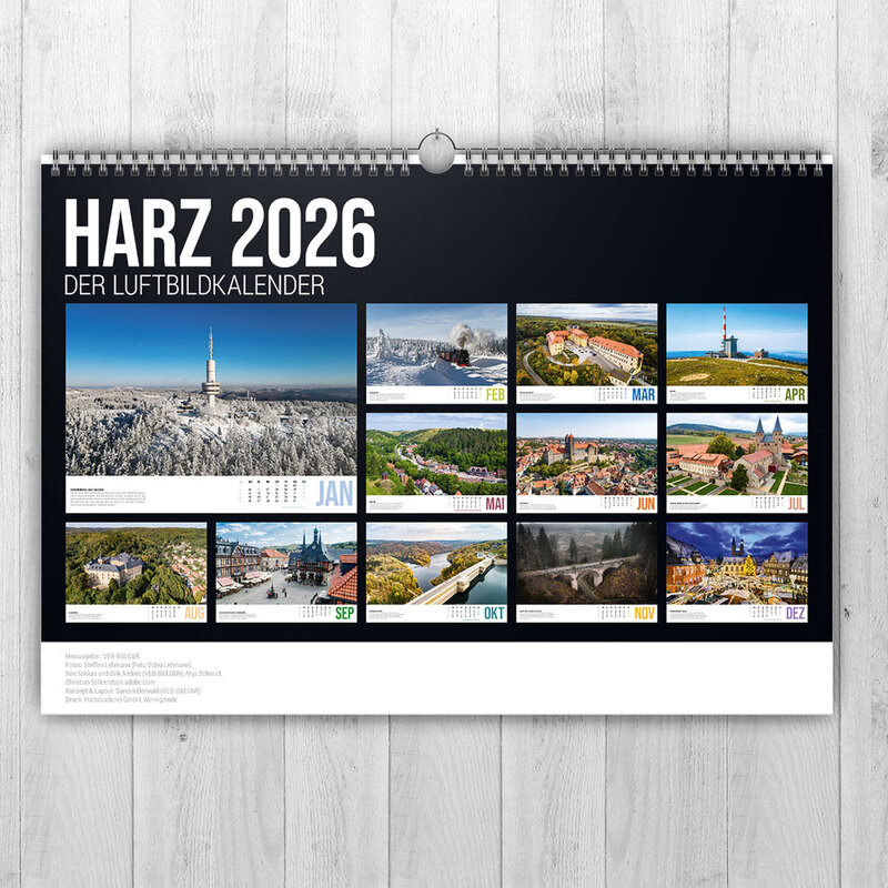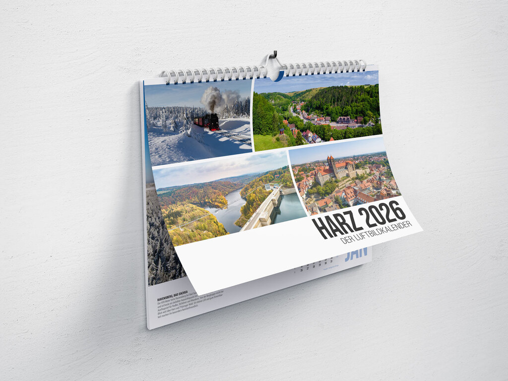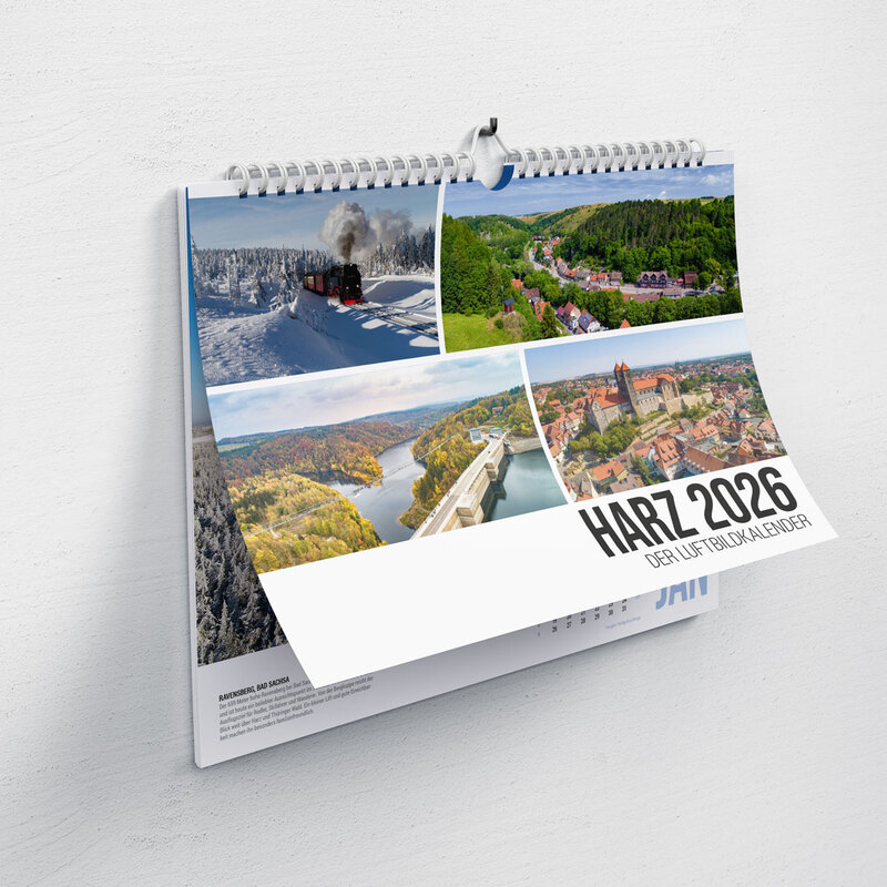 Mit unseren Luftbildern in diesem Kalender zeigen wir den Harz aus einem neuen Blickwinkel. Erkunden Sie die Region aus der Vogelperspektive und entdecken Sie jeden Monat eine neue beeindruckende Ansicht.